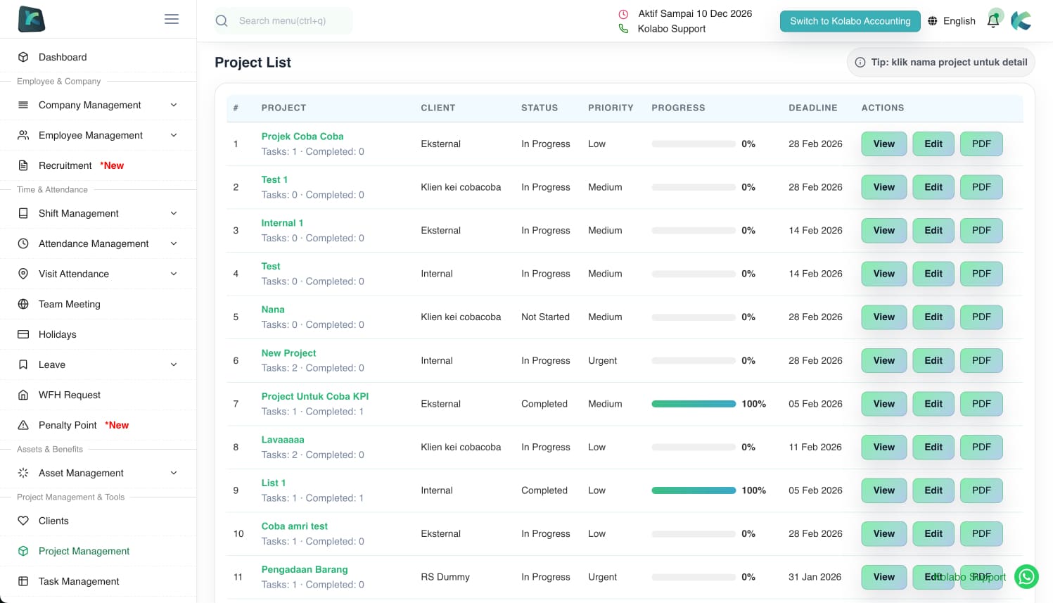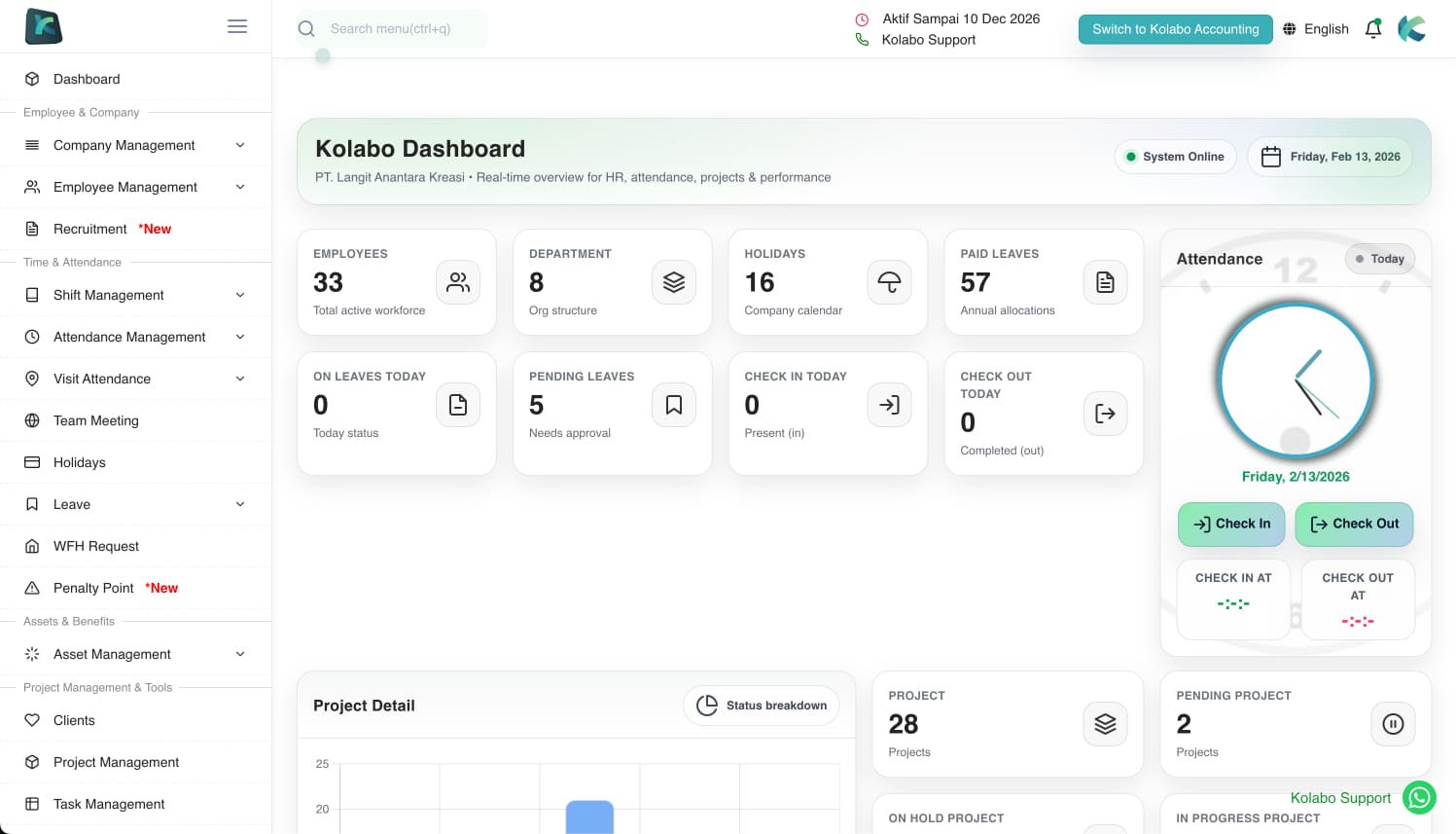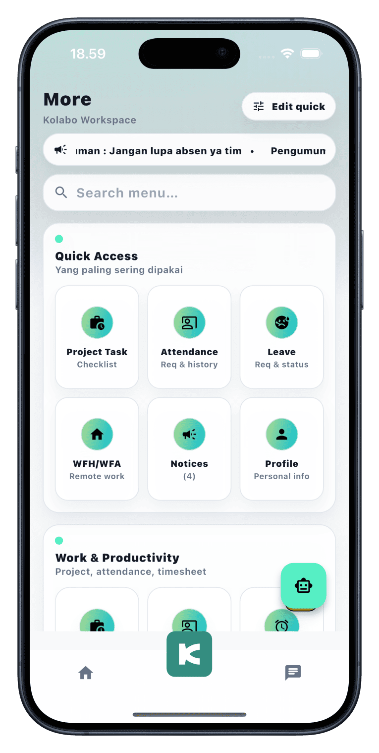 Tingkatkan Produktivitas Team dan Perusahaan Anda dengan Kolabo One Stop Solutions HRM, Accounting, CRM & Project Management.