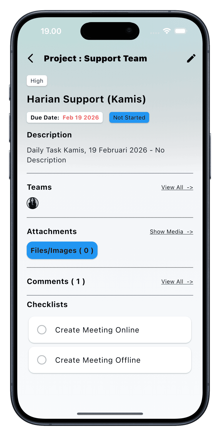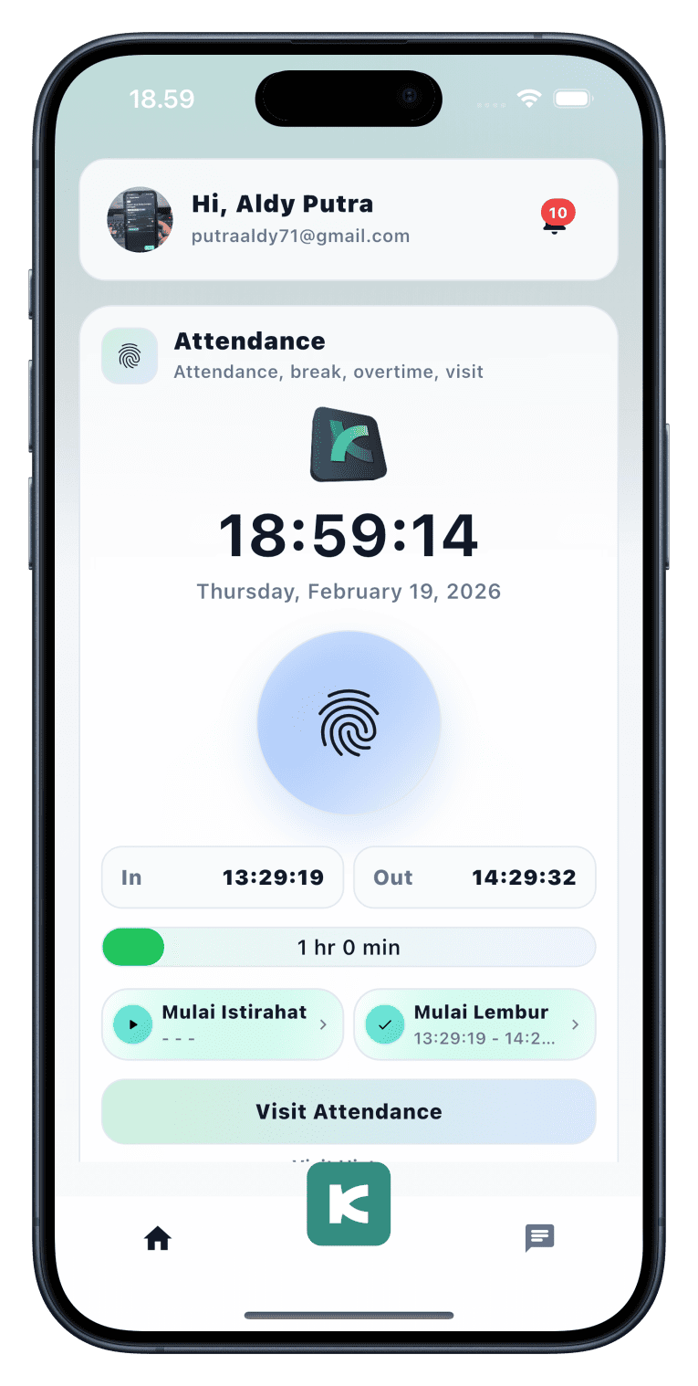 Absensi via smartphone ataupun website berdasarkan lokasi, wifi kantor serta manajemen shift dan divisi, mendukung juga fitur WFH/WFA, kerja lapangan / visit serta lembur dan keterlambatan.
