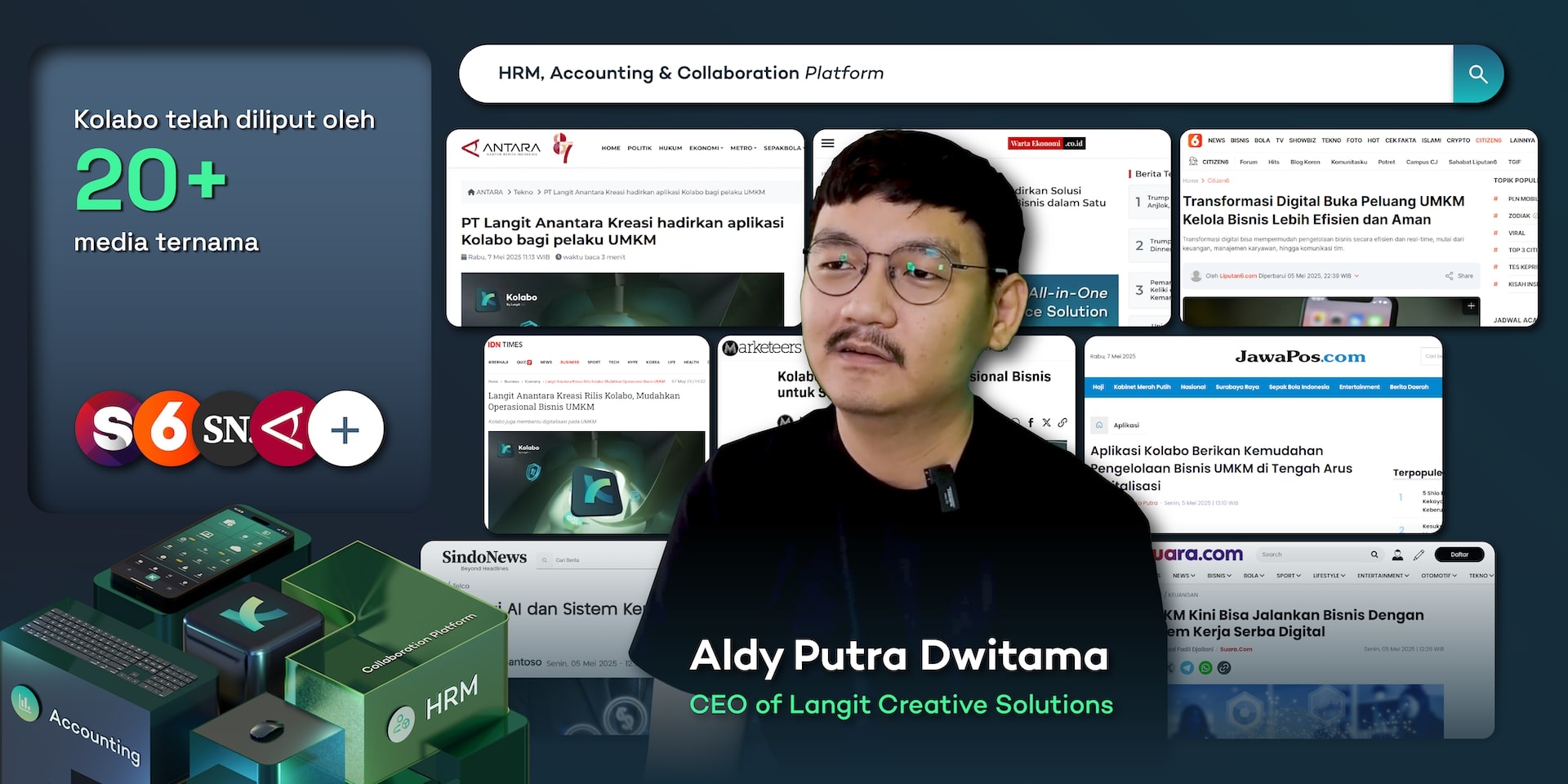 Mahal pakai banyak aplikasi untuk urus perusahaan? Software HRM? Accounting? CRM? Project Management? Penyimpanan? dan banyak lagi semua ada di Kolabo cukup bayar 500rb/bulan!